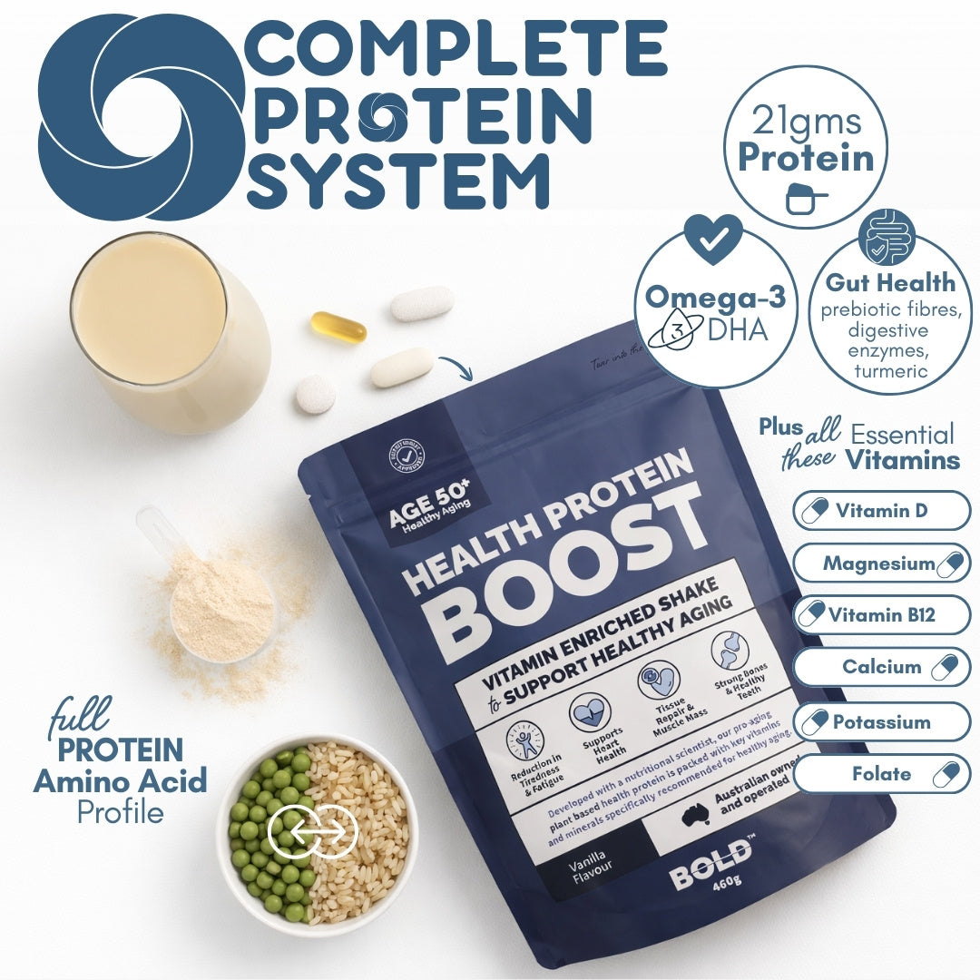 Bold Health's Protein Boost is carefully formulated to deliver comprehensive benefits, actively supporting your journey towards healthy, vibrant ageing.